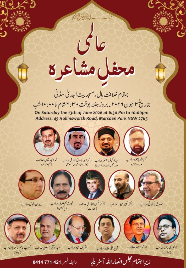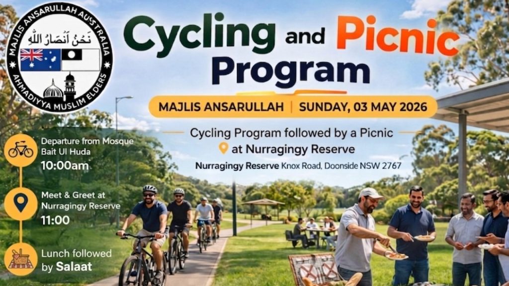 ‘Majlis Ansarullah Australia’ is an auxiliary organisation of the main ‘Ahmadiyya Muslim Association, Australia,’ the latter being a branch of the worldwide Ahmadiyya sect of Islam. All Ahmadis who are forty years of age or over, automatically become members of ‘Ansarullah.’ ‘Majlis Ansarullah,’ like the main body of the Ahmadiyya Muslim Community – to which it is subordinate – is a non-political, religious and spiritual organisation. It has nothing to do with politics of any sort. The number of Ahmadis in Australia grew gradually, predominantly as a result of migration from different countries such as Pakistan, Fiji, India, Bangladesh, Indonesia, Malaysia, Palestine and Africa. ‘Majlis Ansarullah’ came into existence in Australia in the nineteen seventies (1970s).